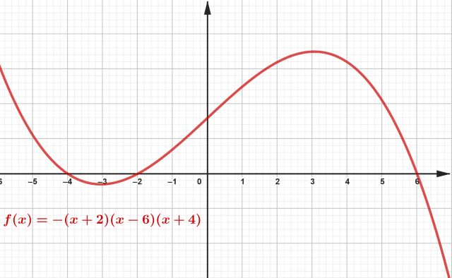 3. Prowadź funkcję tak, aby przecinała oś w miejscach, w których posiada ona pierwiastki, pamiętając, że gdy krotność pierwiastki jest nieparzysta, to przecinamy oś, a gdy jest parzysta – odbijamy wykres od osi.