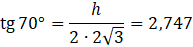 Tutaj ważne jest zauważenie, że podany promień ma taką samą długość jak krawędź podstawy. Objętość graniastosłupa wyznaczasz przez wymnożenia pola podstawy oraz wysokości. W podstawie tego graniastosłupa jest sześciokąt, który składa się z sześciu trójkątów równobocznych, a bok każdego z nich jest równy promieniowi okręgu, który jest opisany na jego podstawie. Wysokość możesz wyznaczyć, korzystając z funkcji tangens 70º, którego wartość znajdziesz w tabeli wartości funkcji trygonometrycznych.