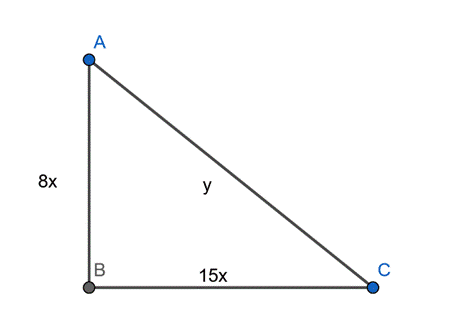 Niech długości przyprostokątnych to 8x i 15x, a długość przeciwprostokątnej to y. Obwód tego trójkąta to 10 cm. Możemy zapisać to jako