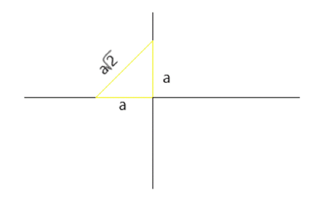 jest długością przeciwprostokątnej w trójkącie prostokątnym równoramiennym o przyprostokątnych a i a. Wbij nóżkę cyrkla w początek układu współrzędnych i zaznacz odległość a na osi x i na osi y. Połącz zaznaczone odległości. Narysowany odcinek będzie miał długość