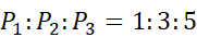 stanowi skalę podobieństwa pól trójkątów. Następnie oblicz pola czworokątów i znajdź ich stosunek.