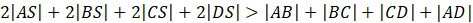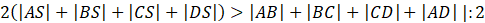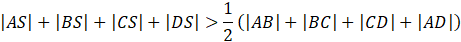 Dany jest czworokąt ABCD oraz dowolny punkt P w płaszczyźnie. Wykaż, że suma odległości punktu P od wierzchołków A, B, C i D jest większa od połowy obwodu tego czworokąta.