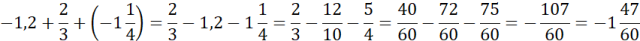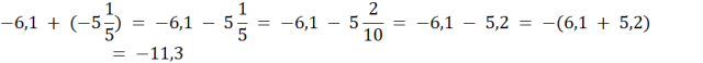 Dodawanie liczby ujemnej możemy zastąpić odejmowaniem jej wartości bezwzględnej. Wynikiem odejmowania dwóch liczby dodatniej od liczby ujemnej jest suma ich wartości bezwzględnych ze znakiem minus na początku. Żeby dodać lub odjąć ułamki sprowadzamy je do wspólnego mianownika, zamieniamy na ułamek niewłaściwy i odpowiednio dodajemy lub odejmujemy.