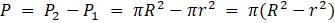 Pole pierścienia jest równe różnicy pól większego i mniejszego: