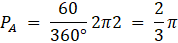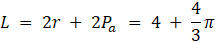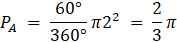 Łuki, które ograniczają zacieniowaną figurę, są styczne. Ich środki leżą w punktach A i B. Podaj pole i obwód tej figury.