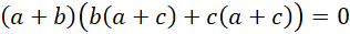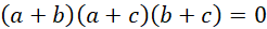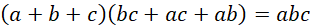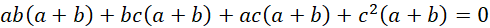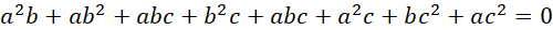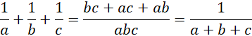 Twierdzenie dowodzimy poprzez sprowadzenie lewej strony na wspólną kreskę ułamkową, a następnie przemnożeniu przez mianowniki, które z założeń są różne od zera. Wymnażamy i redukujemy wyrazy podobne, następnie grupujemy i końcowo otrzymujemy iloczyn, który prowadzi nas do wniosku, że przynajmniej dwie spośród liczb muszą być przeciwne do siebie, co kończy dowód.