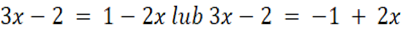 Rozwiązujemy równanie opuszczając wartość bezwzględną wyrażenia. Opuszczenie wartości bezwzględnej skutkuje rozbiciem równania na dwa przypadki. Należy pamiętać o zmianie znaku w drugim przypadku. Następnie rozwiązujemy je jak zwykłe równania. Zwracamy uwagę, aby wartość po prawej stronie była nieujemna poprzez określenie dziedziny.