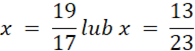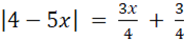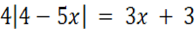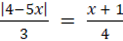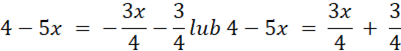 Upraszczamy równanie. Rozwiązujemy równanie opuszczając wartość bezwzględną wyrażenia. Opuszczenie wartości bezwzględnej skutkuje rozbiciem równania na dwa przypadki. Należy pamiętać o zmianie znaku w drugim przypadku. Następnie rozwiązujemy je jak zwykłe równania. Zwracamy uwagę, aby wartość po prawej stronie była nieujemna poprzez określenie dziedziny.