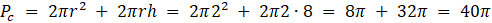 Dany jest walec o wysokości równej dwóm średnicom podstawy. Znajdź jego pole powierzchni, jeśli objętość wynosi 32p.
