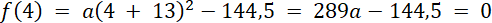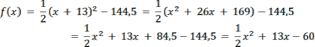 Czyli wierzchołek musi być w punkcie ( - 13, - 144,5)