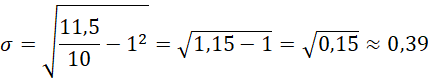 Wyznacz średnią arytmetyczną i odchylenie standardowe 10 danych, których suma wynosi 10 oraz suma ich kwadratów wynosi 11,5.