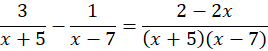 Wyznacz dziedzinę, wiedząc, że mianownik musi być różny od zera. Sprowadź ułamki do wspólnego mianownika, porównaj liczniki i wypisz rozwiązania.