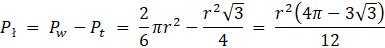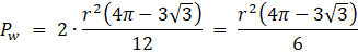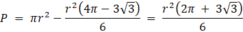 Pole narysowanej figury jest równe dwóm polom koła pomniejszonym o pole części wspólnej: