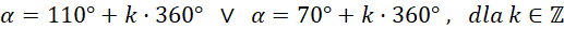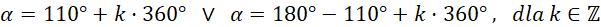 Wyznacz wszystkie argumenty, spełniające warunek , dla których funkcja przyjmuje tę samą wartość, co dla kąta 110°.