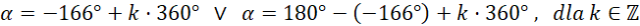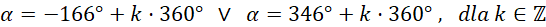 Wyznacz wszystkie argumenty, spełniające warunek , dla których funkcja przyjmuje tę samą wartość, co dla kąta -166°.