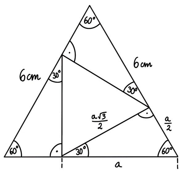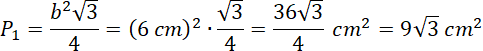 Oblicz pole trójkąta równobocznego o boku 6 cm: