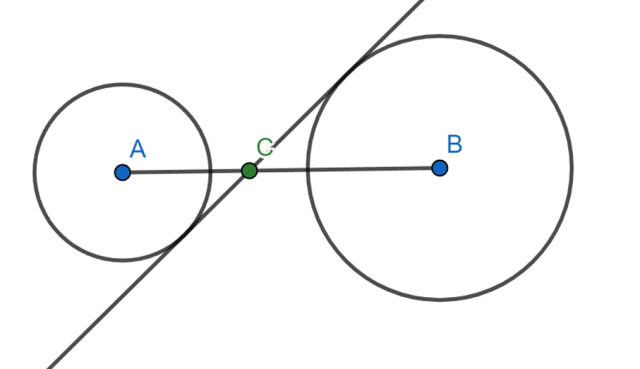 Dane są dwa okręgi: o(A, 8) i o(B, 12). Odcinek AB ma długość 25 i przecina się ze styczną wewnętrzną tych dwóch okręgów w punkcie C. W tym zadaniu musisz obliczyć odległość punktu C od punktu B.