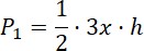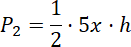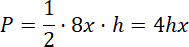 Korzystając z informacji w treści zadania o różnicy pól powstałych trójkątów wyznacz iloczyn niewiadomej x i h – wysokości trójkąta. Zapisz wzór na pole trójkąta ABC i podstaw odpowiednią wartość.