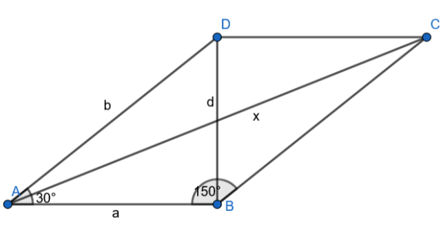Oblicz długość przekątnej AC, jeśli w równoległoboku ABCD krótsza przekątna BD ma długość