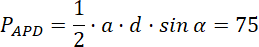 Skorzystaj z danych obliczonych w podpunkcie a), zapisz wzór na pole trójkąta APD, a następnie na pole szukanego trójkąta. Zapisz je w taki sposób, aby zauważalne było, że można podstawić wartość pola trójkąta APD. Oblicz szukane pole.