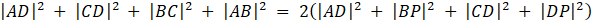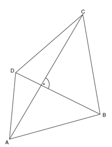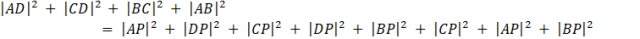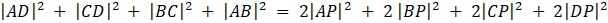 Dany jest czworokąt wypukły, w którym przekątne przecinają się pod kątem prostym w punkcie P. Udowodnij, że suma odległości między punktem P a wierzchołkami czworokąta jest dwukrotnie mniejsza niż suma kwadratów długości jego boków.