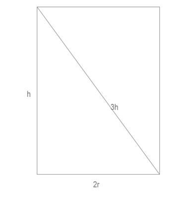 Długość przekątnej przekroju osiowego walca jest równa trzykrotności jego wysokości. Znajdź stosunek przekątnej rozwiniętej powierzchni bocznej do jego wysokości.