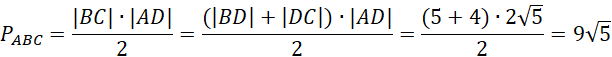 Oznacz przez D spodek wysokości opuszczonej na bok BC. Oblicz |AD| z twierdzenia Pitagorasa. Trójkąty ABC i DAC są podobne z cechy kkk (mają one wspólny kąt przy wierzchołku C oraz dwa takie same kąty). Trójkąty ABC i DBA są podobne z cechy kkk (mają one wspólny kąt przy wierzchołku B oraz dwa takie same kąty). Z tych dwóch podobieństw wynika podobieństwo trójkąta DAC do DBA. Wyznacz długość |BD| i następnie pole trójkąta ABC.
