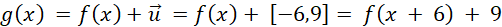 przesuwa się o 6 jednostkę w lewo oraz o 9 jednostki do góry. Oznacza to, że zbiór wartości funkcji oraz dziedzina funkcji ulegają zmianie. Zbiór wartości rośnie o 9 jednostek z każdego krańca przedziału: