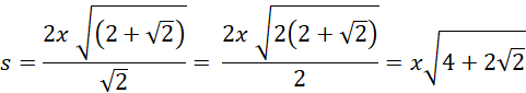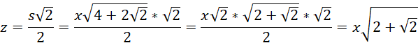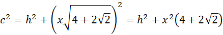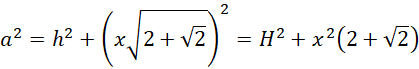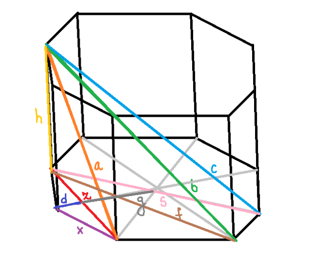 Zauważ, których odcinków długości są Ci potrzebne do rozwiązania zadania. Następnie używając twierdzenia Pitagorasa, przekształć je tak, aby uprościć wyrażenia. Zacznij od wyznaczenia miar kątów w trójkątach budujących podstawę bryły. Następnie wyznacz długość boku ośmiokąta foremnego. Mając tę wartość, spróbuj wyznaczyć wartości przekątnych łączących wierzchołki podstawy bryły. Następnie na podstawie zebranych danych wyznacz wartość przekątnej a i c oraz wysokość bryły. Na koniec dzięki uzyskanym wartościom bez trudu wyliczysz długość przekątnej b.