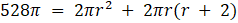 Dany jest walec o polu powierzchni 528p. Wyznacz jego objętość, jeśli wysokość jest o dwa większa niż jego promień.