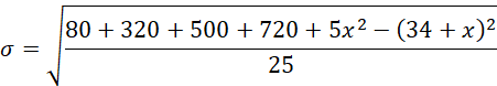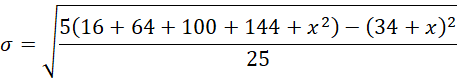 Ustal, jaką wartość można dopisać do zestawu liczb 4, 8, 10, 12, aby otrzymany zestaw pięciu liczb miał odchylenie standardowe równe 4.