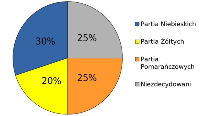 Poparcie dla Pomarańczowych było o 25% większe niż poparcie dla Żółtych, czyli: