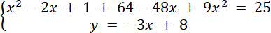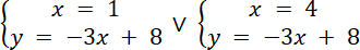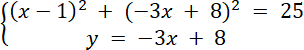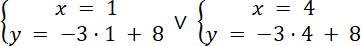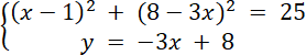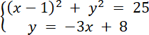 Wyznacz równanie okręgu, a następnie rozwiąż układ równań z dwoma równaniami. Otrzymasz współrzędne punktów