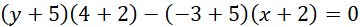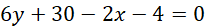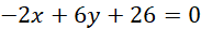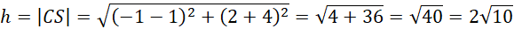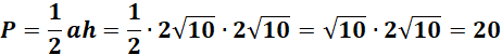Oblicz długość podstawy trójkąta, następnie znając równanie zawierające jego ramię, wyznacz wartości x i y i oblicz wysokość figury. Na koniec oblicz pole trójkąta.