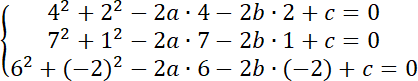 Najpierw znajdź środek i promień okręgu. Wykorzystaj do tego równanie w postaci ogólnej. Stwórz układ równań:
