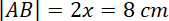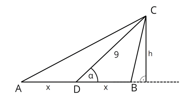 Narysuj odpowiedni rysunek. Wyznacz pole trójkąta DBC na dwa sposoby, wyznacz długość odcinka x. Oblicz długość podstawy AB jako odcinek równy 2x.