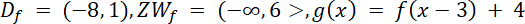 Dziedzina: ( - 8, 1) przesunięta o 3 w prawo na osi OX: ( - 8 + 3, 1 + 3) = ( - 5, 4).