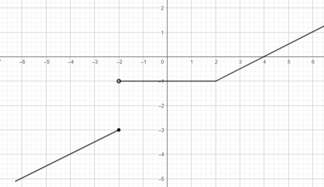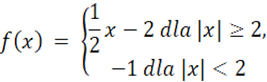 - funkcja stała na tym przedziale. Należy zwrócić uwagę, że -2 nie należy do wykresu funkcji w tej dziedzinie, zaznaczamy tą informację pustym kółkiem. Natomiast w argumencie równym 2 funkcja łączy się z wykresem wcześniej omawianej funkcji.
