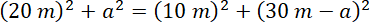Oznacz odległość celu od wyższej wieży jako a. Wieże o wysokościach 10 m i 20 m, oddalone są od siebie o 30 m. To znaczy, że odległość między niższą wieżą a celem będzie wynosić 30 m – a.