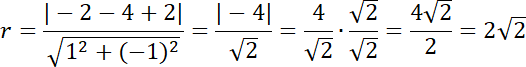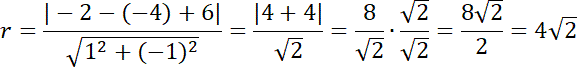 Odległość między jedną z prostych stycznych a środkiem okręgu to długość promienia, więc oblicz: