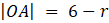 Korzystając z zależności okręgów stycznych wewnętrznie, jego wysokość OA ma długość: