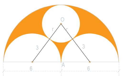 Zauważ, że trójkąt o party na środkach okręgów jest równoramienny o ramieniu 3 + r.