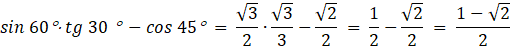 Znajdź wartość: sin 60°×tg 30 ° -cos 45°.
