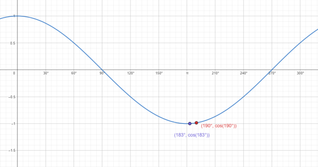 W tym zadaniu musisz powiedzieć, która z podanych liczb jest większa, patrząc na cosinusoidę.