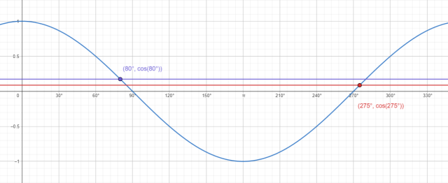 W tym zadaniu musisz powiedzieć, która z podanych liczb jest większa, patrząc na cosinusoidę.