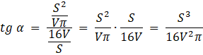 Dany jest walec o objętości V i Pol powierzchni S. Znajdź tangens kata pomiędzy średnicą podstawy a przekątną przekroju osiowego.