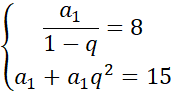 Wyznacz pierwszy wyraz i iloraz tego ciągu, jeśli suma wszystkich wyrazów nieskończonego ciągu geometrycznego jest równa 8. Suma pierwszego i trzeciego wyrazu jest równa 15.