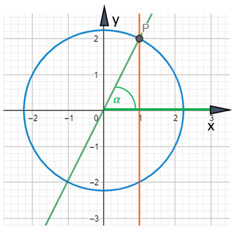 W tym zadaniu skorzystaj ze wzoru na cos α, aby wyznaczyć warunki dla punktu P, przyrównaj liczniki ułamków oraz mianowniki, narysuj odpowiedni wykres i okrąg w układzie współrzędnych. Rozwiązaniem zadania jest tylko jedno miejsce przecięcia osi x = 1 z okręgiem oraz tg α > 0. Punkt, który spełnia wszystkie 3 warunki, znajduje się w I ćwiartce układu współrzędnych.