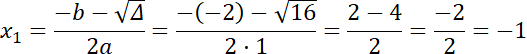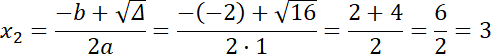 ∆ = b2 – 4ac = (–2)2 – 4 · 1 · (–3) = 16