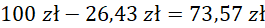 Reszta wynosi 73,57 zł.